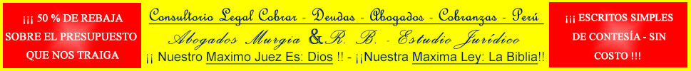 COBRAR DEUDAS ABOGADOS COBRANZAS PERU, Finalizando cualquier cobro de deuda caso o asunto legal o asunto judicial o gestión o trámite administrativo recien cobramos una comisión %Porcentaje%